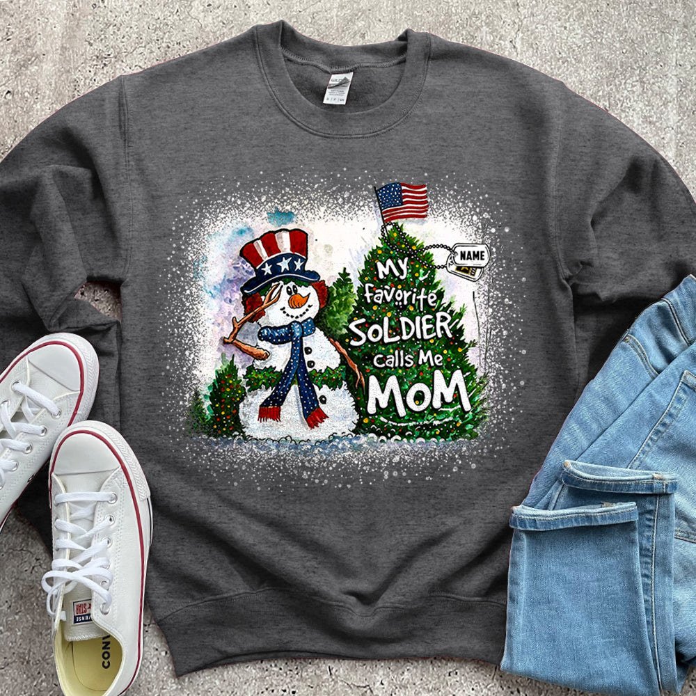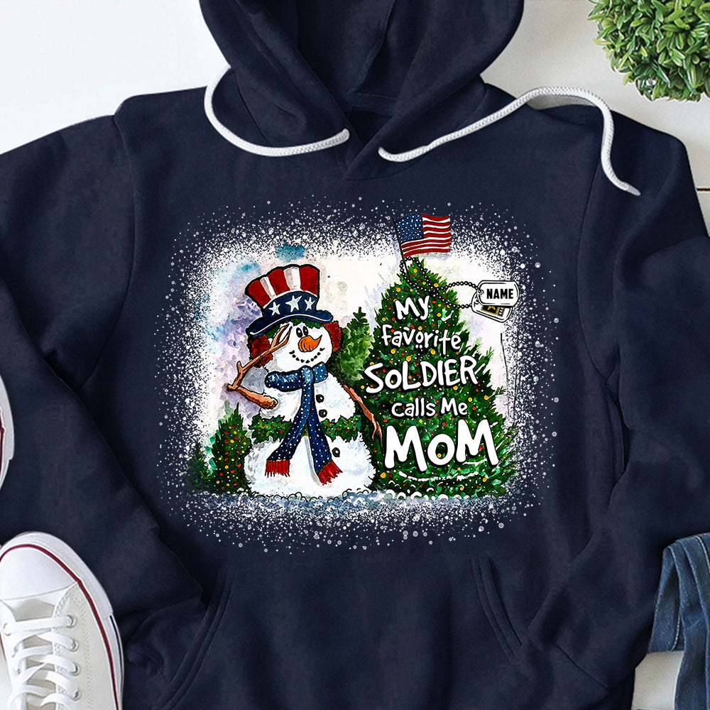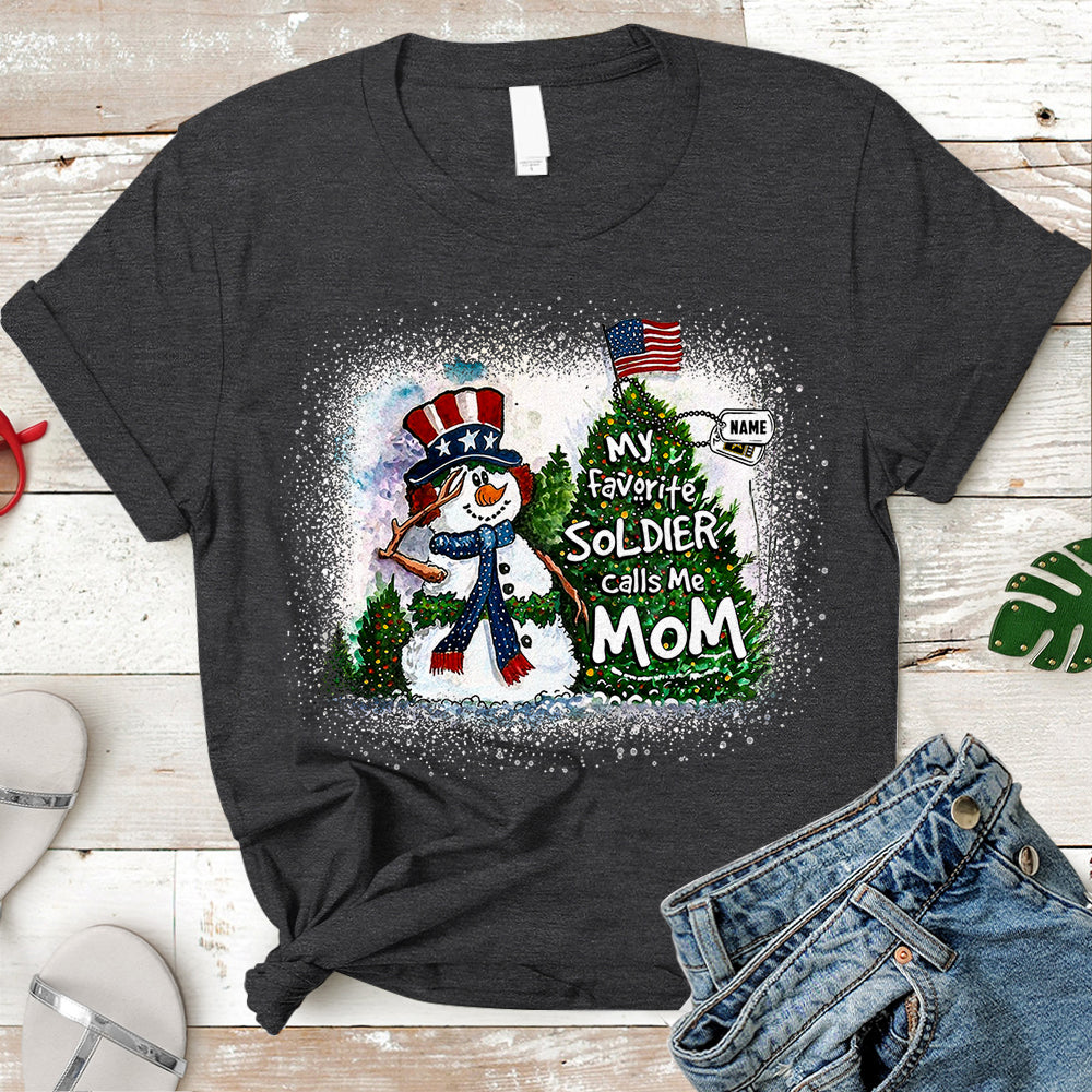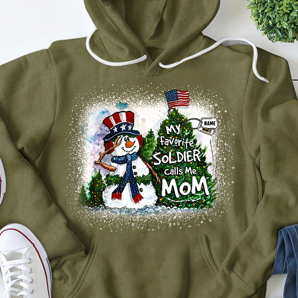 Personalized Christmas Shirt My Favorite Soldier Calls Me Mom Dad Wife Christmas Snowman Pine With Hastag Shirt For Armed Forces Family Member H2511