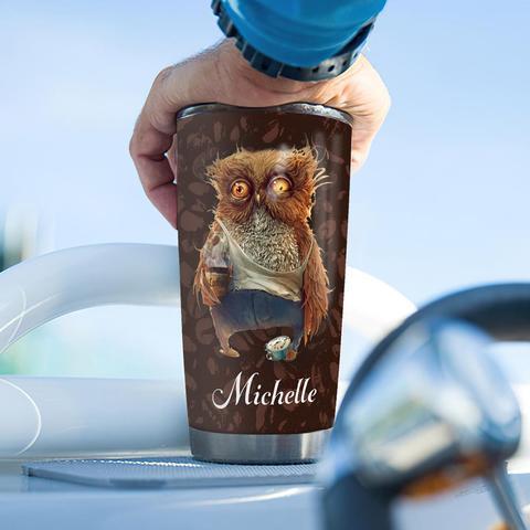 Personalized Coffee Owl Stainless Steel Tumbler, Personalized Tumblers, Tumbler Cups, Custom Tumblers