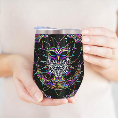 Personalized Colorful Owl Wine Tumbler, Personalized Tumblers, Tumbler Cups, Custom Tumblers