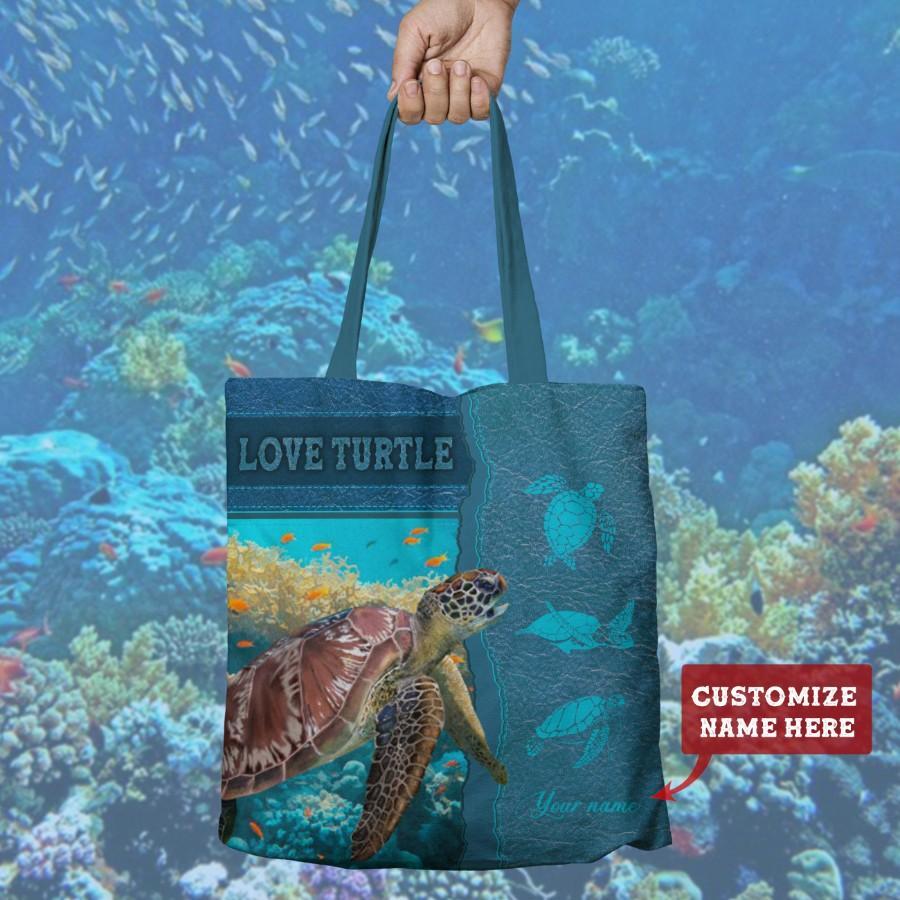 Personalized Customized Green Sea Turtle Love Leather Fake 3D Printed Tote Bag