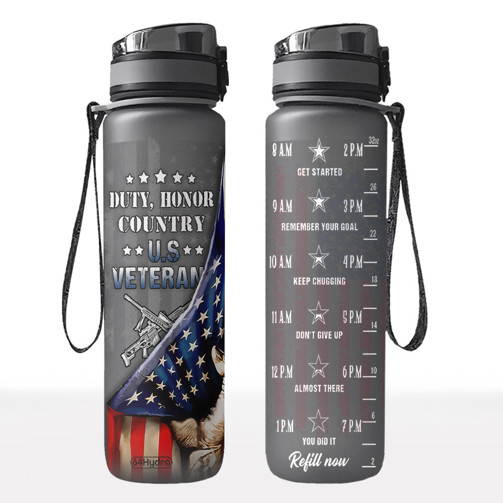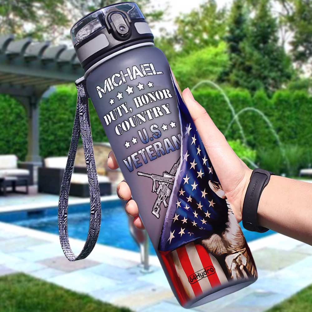 Personalized Duty Honor Country Veteran Vet Bgyz0109006Z Black Water Tracker Bottle
