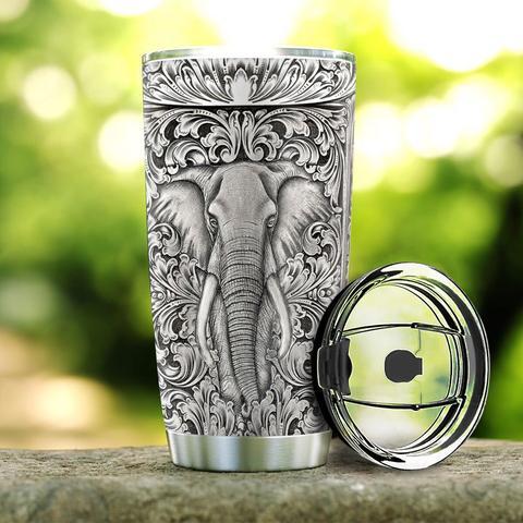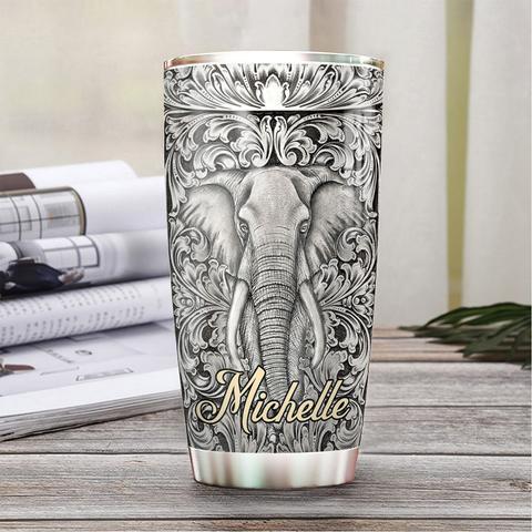 Personalized Elephant Silver Style Stainless Steel Tumbler, Personalized Tumblers, Tumbler Cups, Custom Tumblers