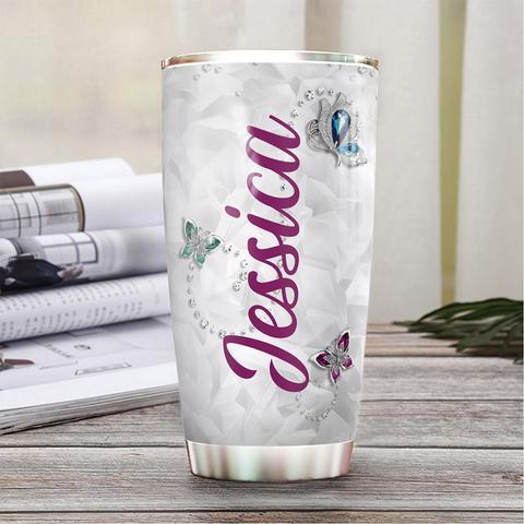 Personalized Faith Butterfly Jewelry Style Stainless Steel Tumbler, Personalized Tumblers, Tumbler Cups, Custom Tumblers