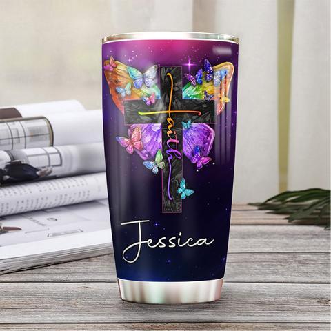 Personalized Faith Butterfly Stainless Steel Tumbler, Personalized Tumblers, Tumbler Cups, Custom Tumblers