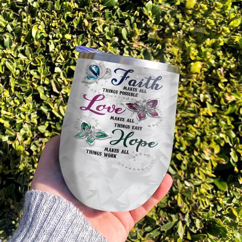 Personalized Faith Hope Love Butterfly Jewelry Wine Tumbler, Personalized Tumblers, Tumbler Cups, Custom Tumblers