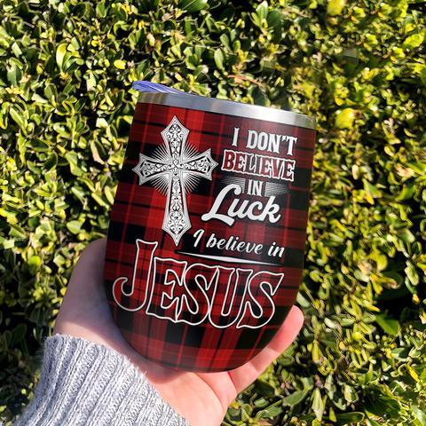 Personalized Faith I Dont Believe In Luck Wine Tumbler, Personalized Tumblers, Tumbler Cups, Custom Tumblers