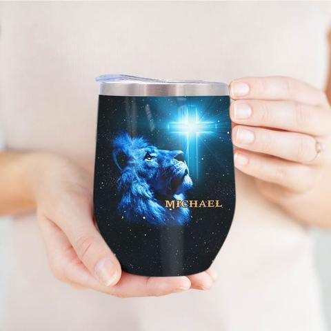 Personalized Faith Lion Wine Tumbler, Personalized Tumblers, Tumbler Cups, Custom Tumblers