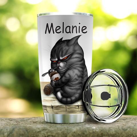 Personalized Fat Black Cat Stainless Steel Tumbler, Personalized Tumblers, Tumbler Cups, Custom Tumblers