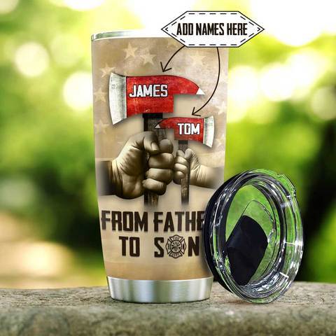 Personalized Firefighter Dad Son Stainless Steel Tumbler, Personalized Tumblers, Tumbler Cups, Custom Tumblers