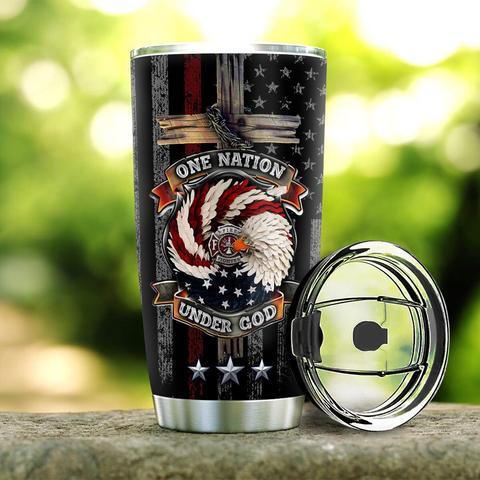 Personalized Firefighter One Nation Under God Stainless Steel Tumbler, Personalized Tumblers, Tumbler Cups, Custom Tumblers