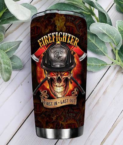 Personalized Firefighter Skull Stainless Steel Tumbler, Personalized Tumblers, Tumbler Cups, Custom Tumblers