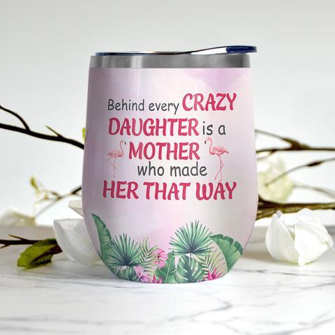 Personalized Flamingo Behind Every Crazy Daughter Wine Tumbler, Personalized Tumblers, Tumbler Cups, Custom Tumblers