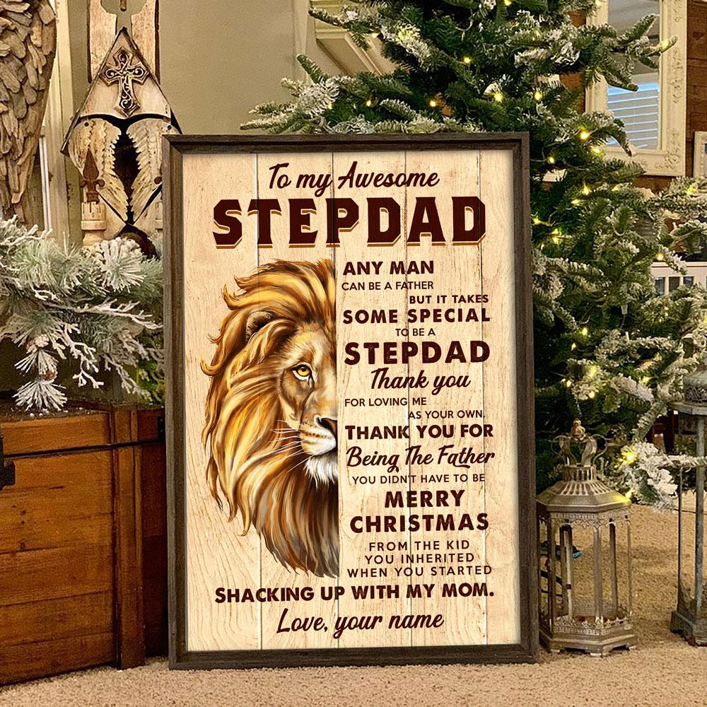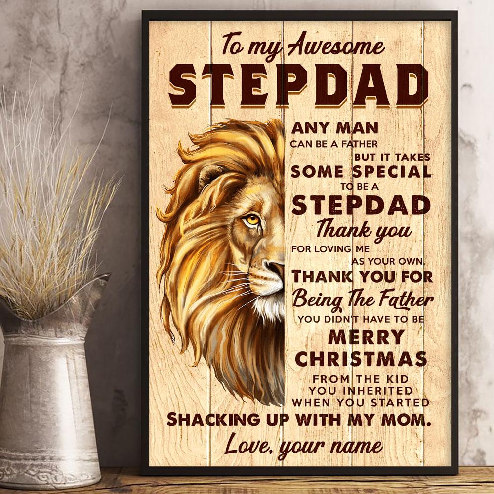 Personalized Gift For Stepdad Lion Merry Christmas From The Kid You Inherited Standard Poster