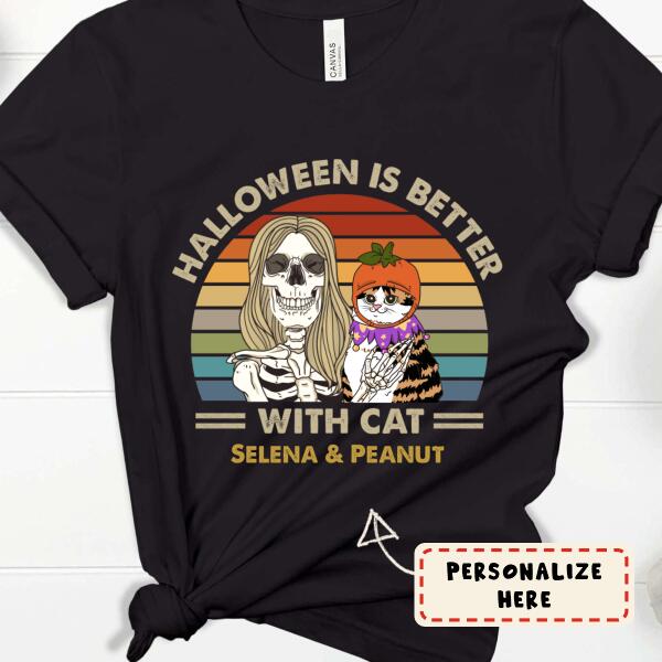 Personalized Girl And Cat Halloween Is Better With Cat Premium Shirt