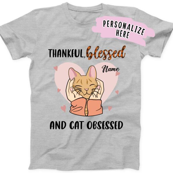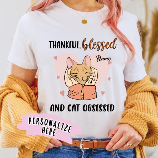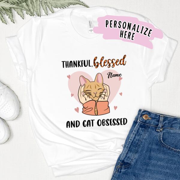Personalized Girl Cat Obsessed Fall Thanksgiving Shirt, Gift For Cat Lovers