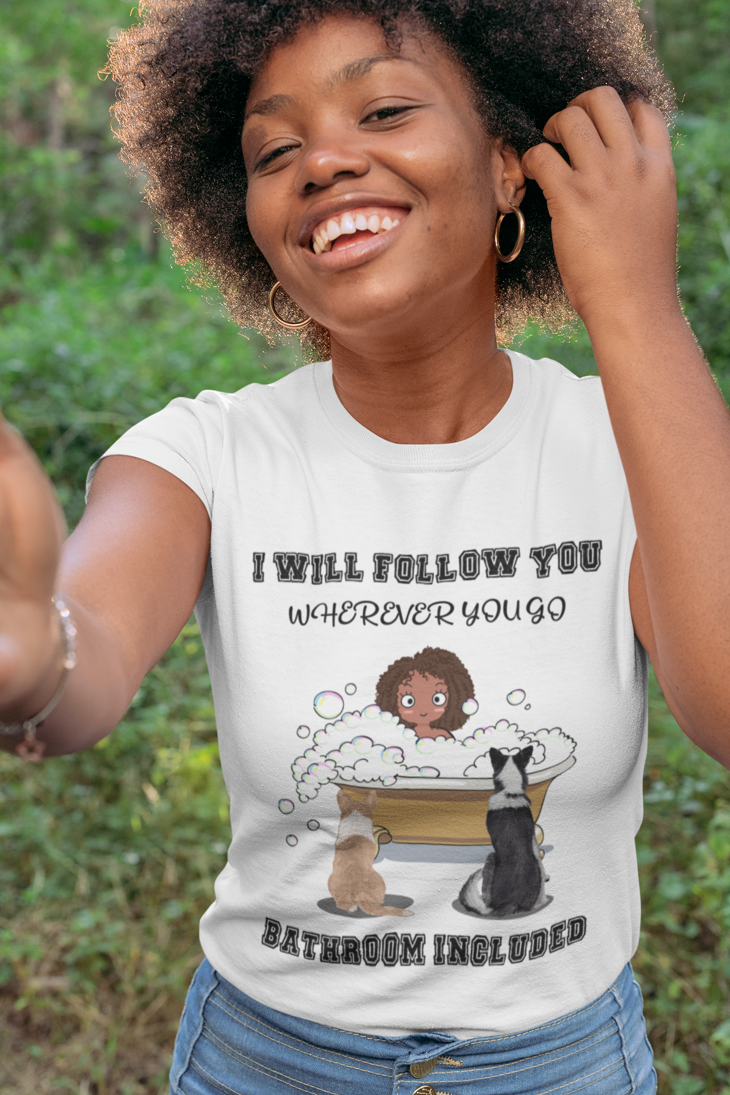 Personalized Girl & Dog Shirt – I Will Follow You Wherever You Go , Bathroom Included – Hvds0030