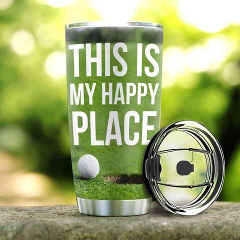 Personalized Golf Happy Place Stainless Steel Tumbler, Personalized Tumblers, Tumbler Cups, Custom Tumblers
