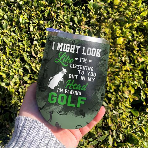 Personalized Golf Thinking Wine Tumbler, Personalized Tumblers, Tumbler Cups, Custom Tumblers