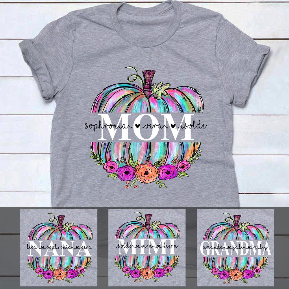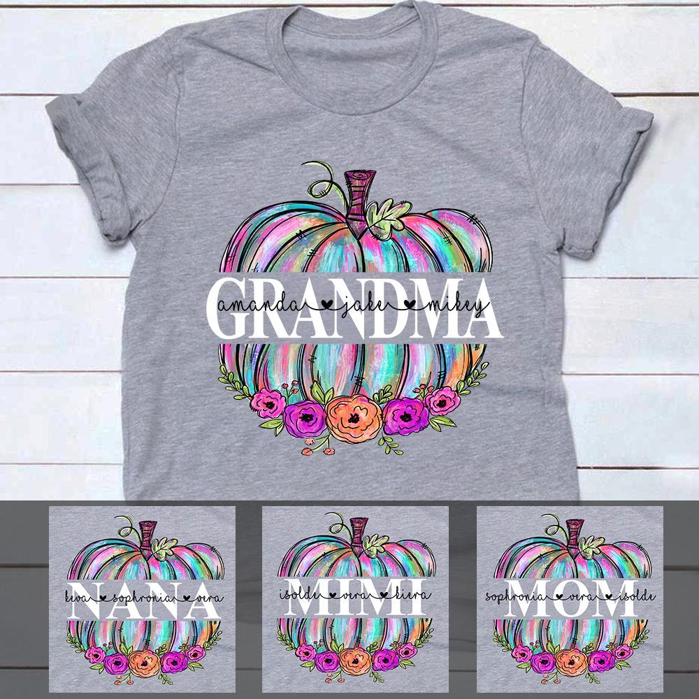 Personalized Grandma Mom Pumpkin Floral Unisex T-Shirt, Hoodie All Color Size S-5Xl