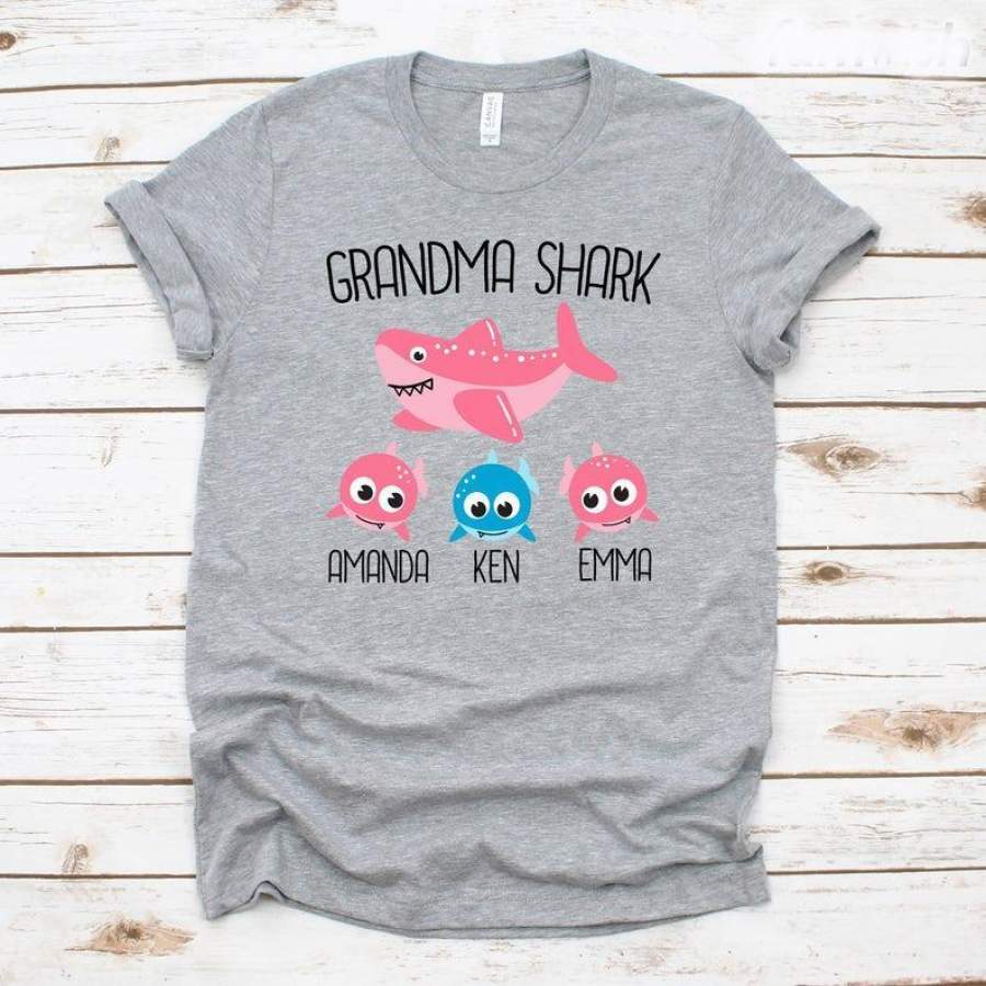 Personalized Grandma Shark Shirt, Grandmother Gift, Grandparents T-Shirt, Gift From Daughter, Gift From Son, Gift From Husband