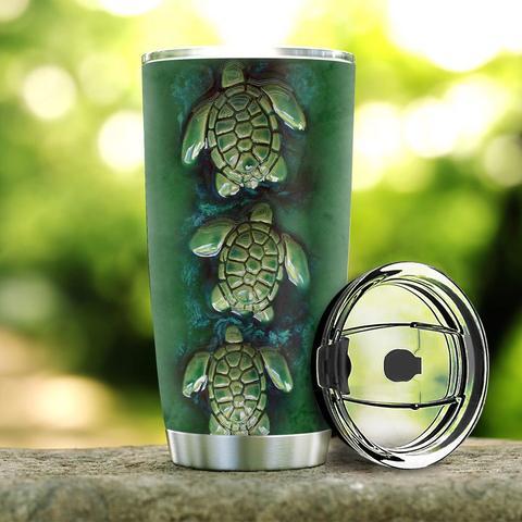Personalized Green Turtle Ceramic Style Stainless Steel Tumbler, Personalized Tumblers, Tumbler Cups, Custom Tumblers