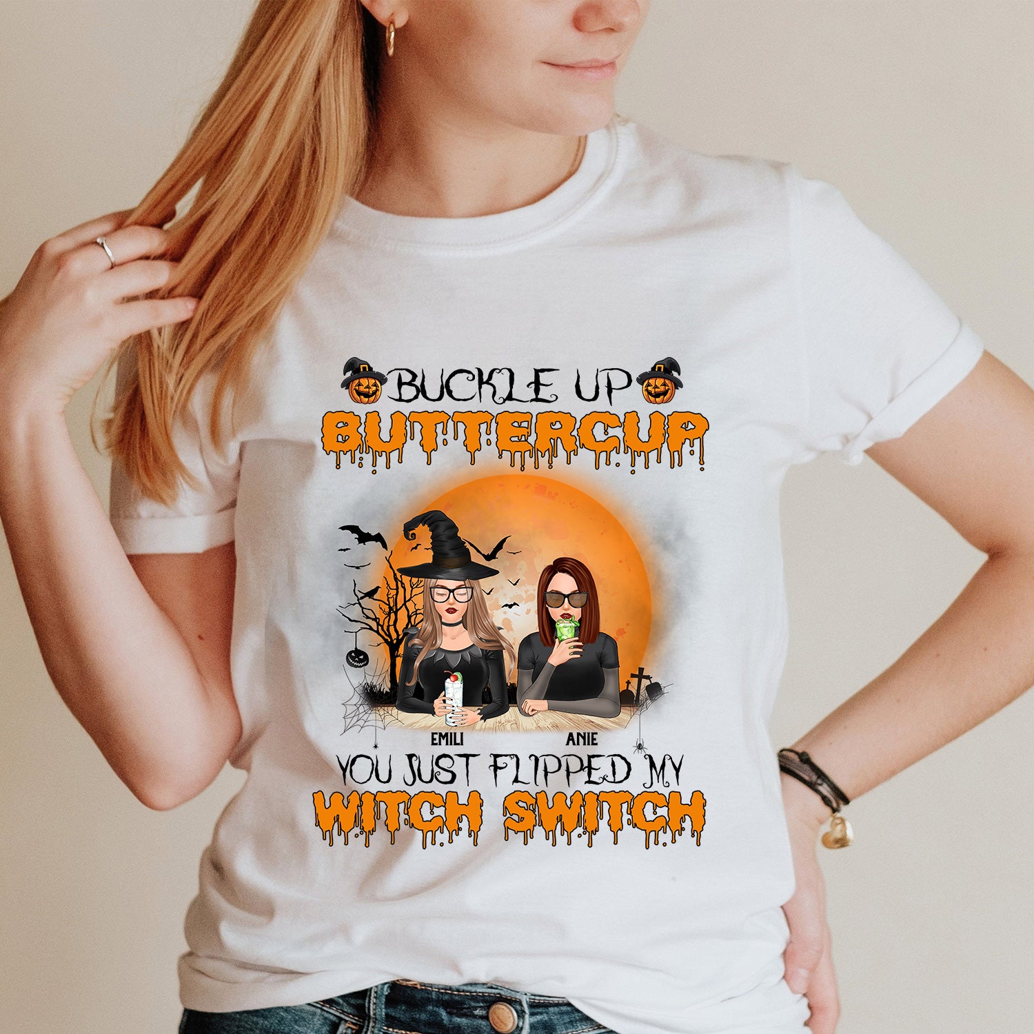 Personalized Halloween Buckle Up Buttercup Witch Switch Shirt, Custom Friend, Besties, Sister Shirt