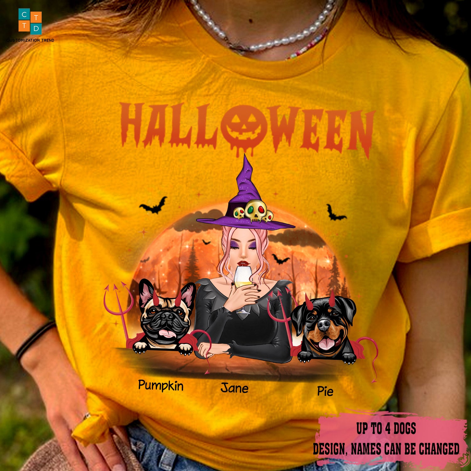 Personalized Halloween Dog And Pretty Wiches Shirt, Custom Dog Lovers, Dog Mom Shirt