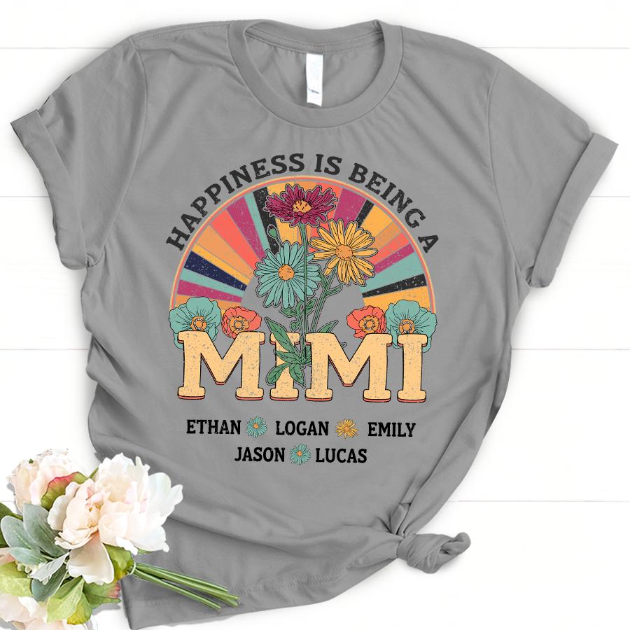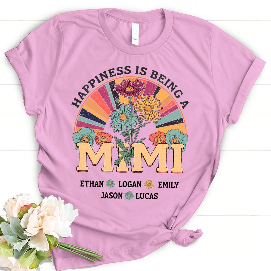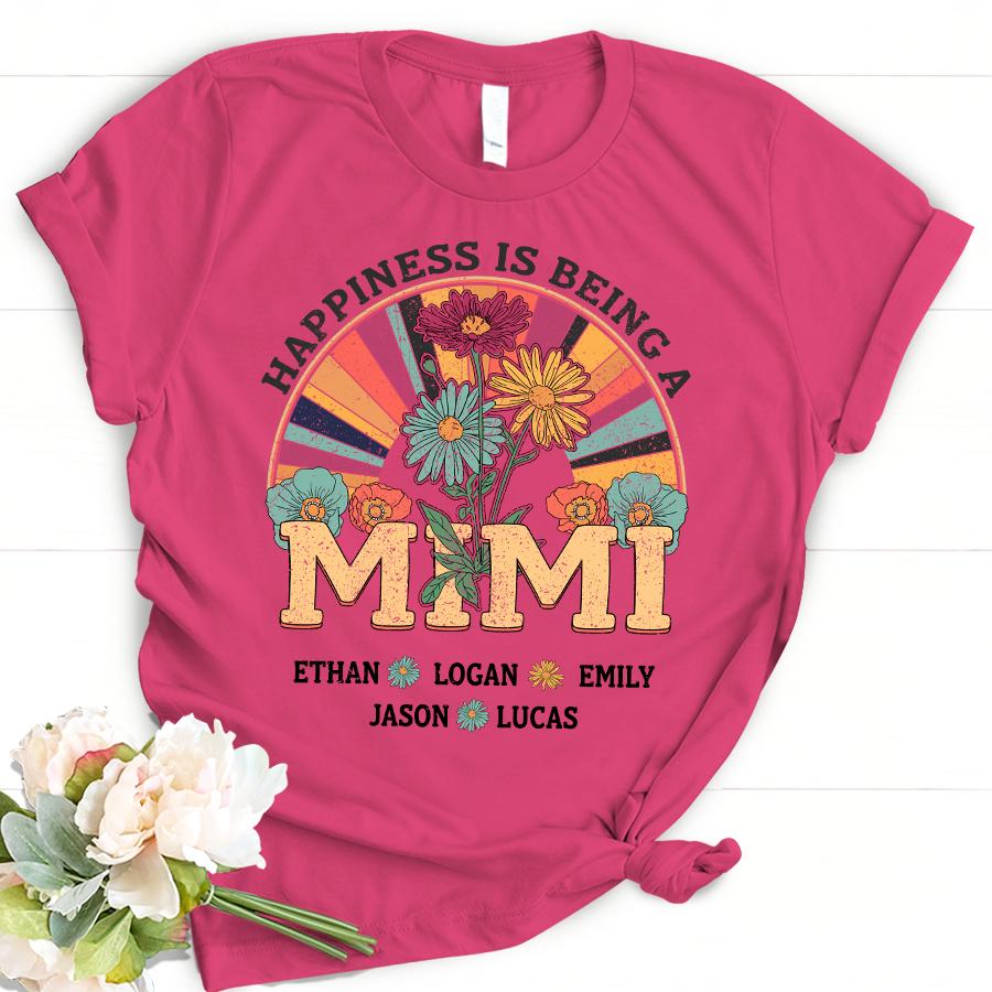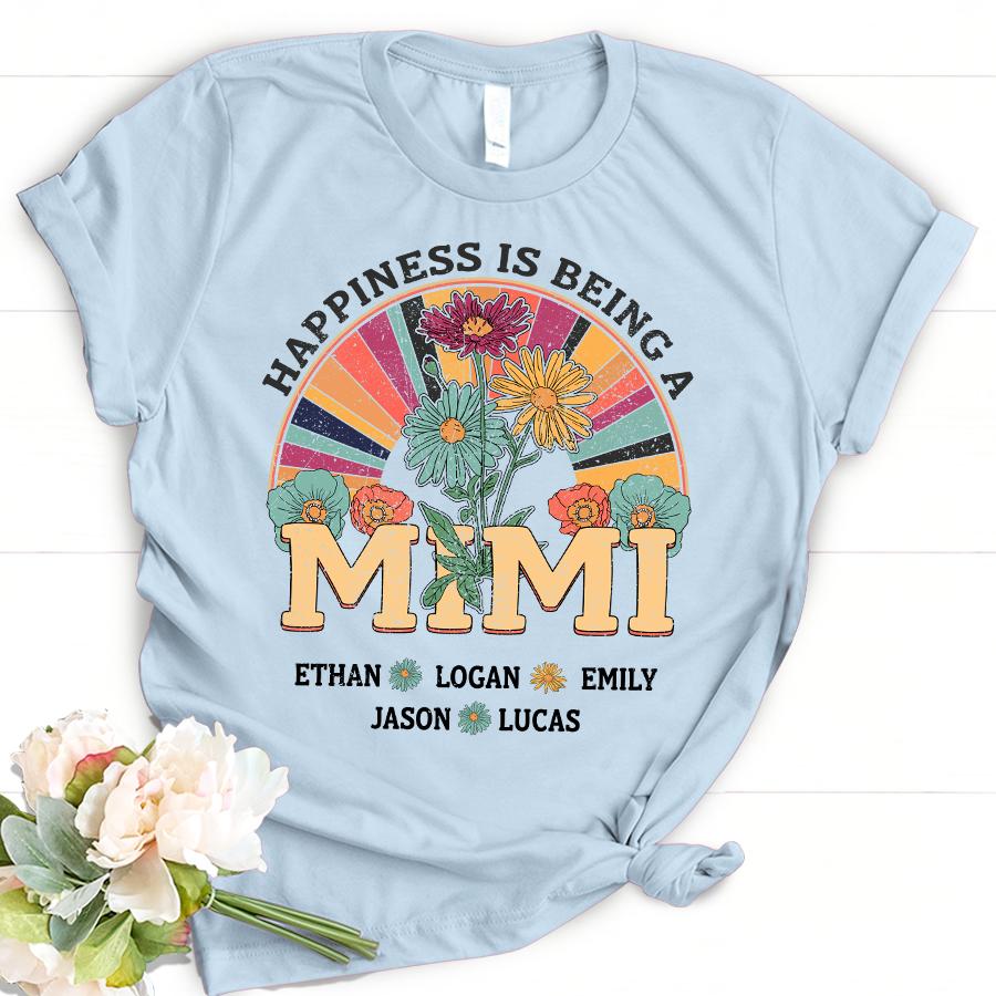 Personalized Happiness Is Being A Mimi With Grandkids Name T-Shirt Women