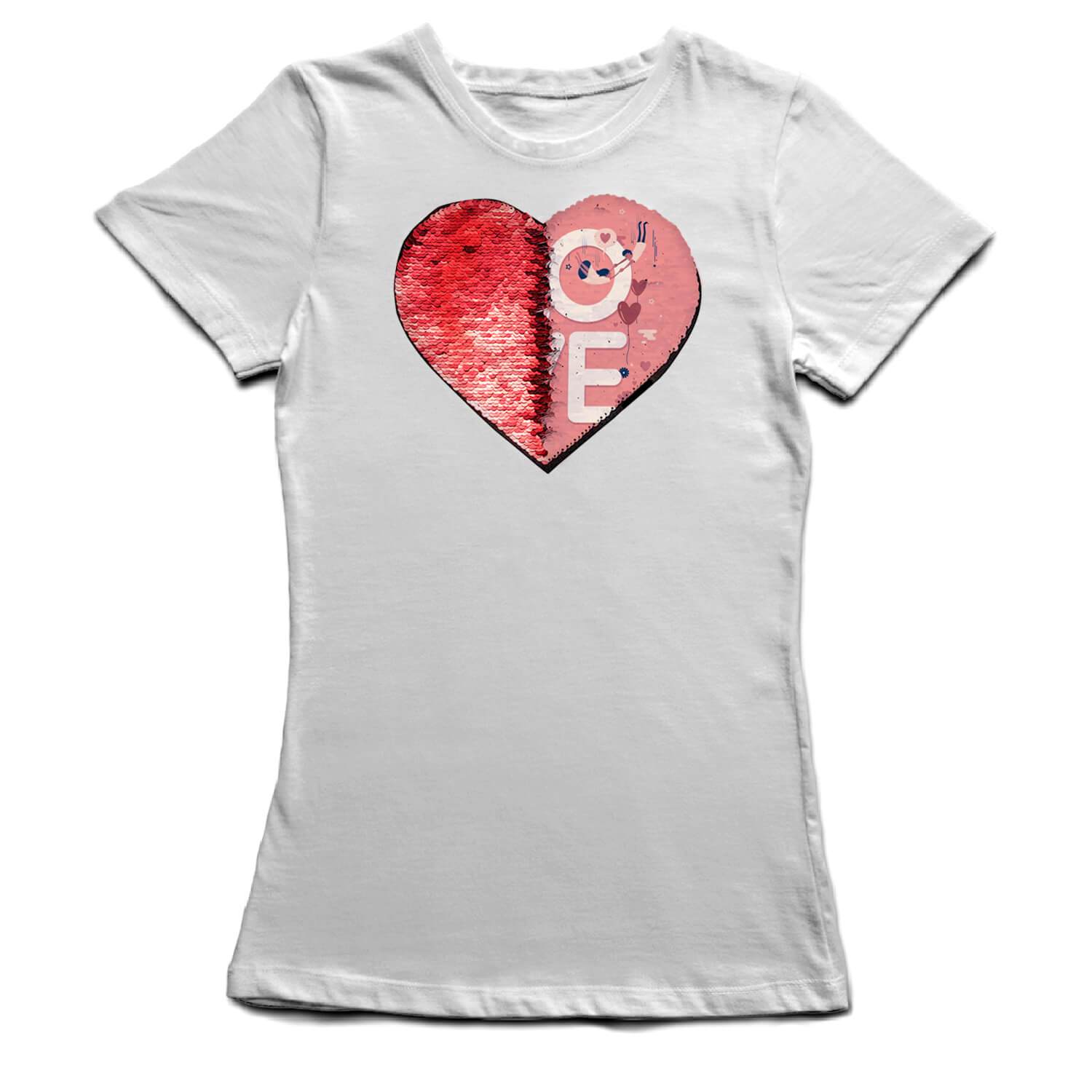 Personalized Heart Sequin Women T-Shirts – Add Your Text And Photo