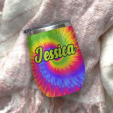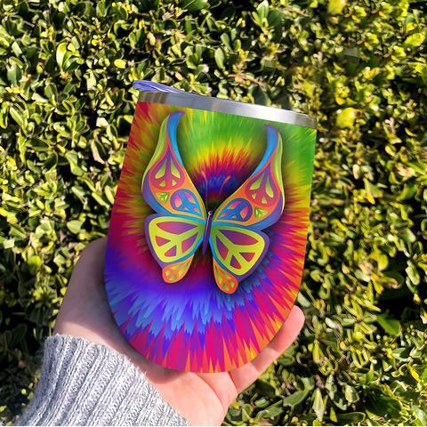 Personalized Hippie Butterly Tiedye Wine Tumbler, Personalized Tumblers, Tumbler Cups, Custom Tumblers