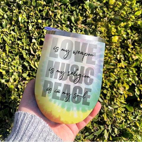 Personalized Hippie Love Music Peace Wine Tumbler, Personalized Tumblers, Tumbler Cups, Custom Tumblers