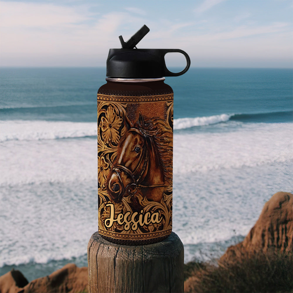 Personalized Horse Leather Style Hlz2904011Z Stainless Steel Bottle With Straw Lid