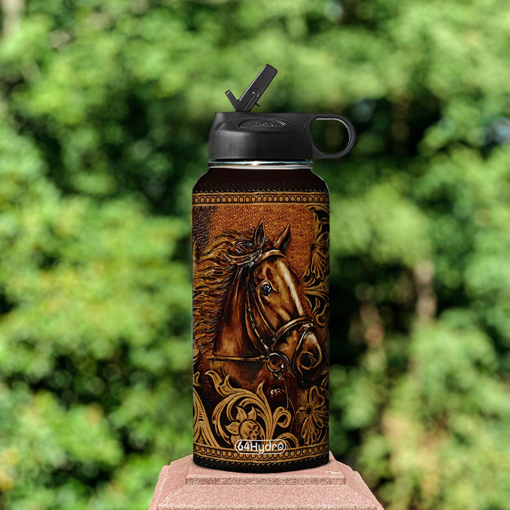 Personalized Horse Leather Style Hlzz2904011Z Stainless Steel Bottle With Straw Lid