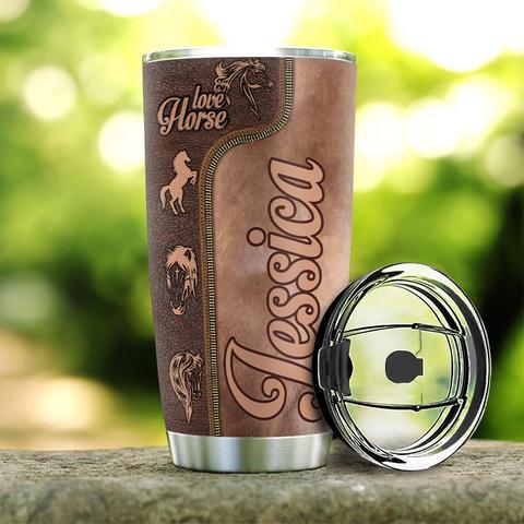 Personalized Horse Lover Leather Style Stainless Steel Tumbler, Personalized Tumblers, Tumbler Cups, Custom Tumblers
