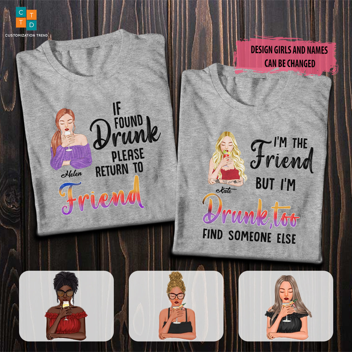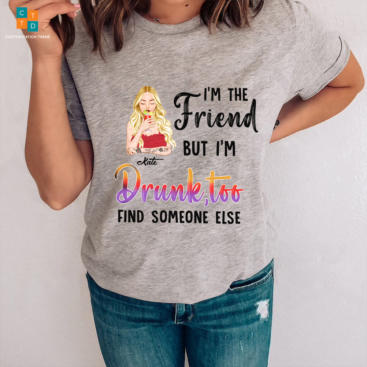 Personalized I’M The Friend But I’M Drunk, Too Find Someone Else Shirt, Custom Friends, Sisters, Besties Shirt