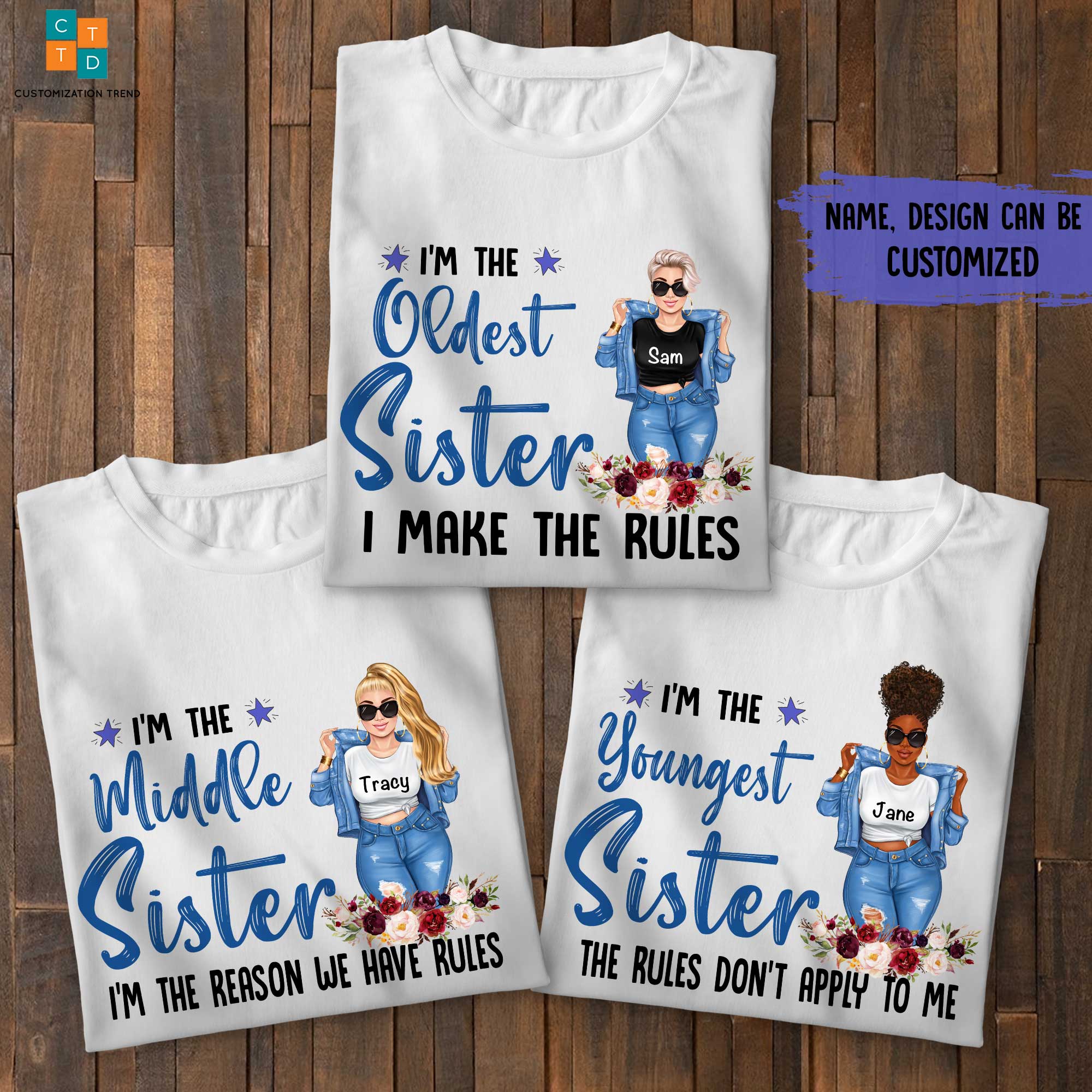 Personalized I’M The Middle Sister I’M The Reason We Have Rules Shirt, Custom Sisters Shirt