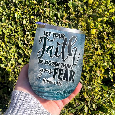 Personalized Jesus Faith Bigger Than Fear Wine Tumbler, Personalized Tumblers, Tumbler Cups, Custom Tumblers