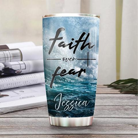 Personalized Jesus Faith Over Fear Stainless Steel Tumbler, Personalized Tumblers, Tumbler Cups, Custom Tumblers