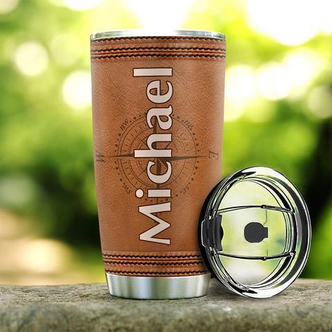 Personalized Lion Faith Leather Style Stainless Steel Tumbler, Personalized Tumblers, Tumbler Cups, Custom Tumblers