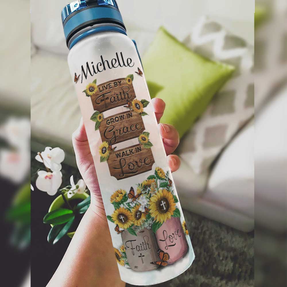 Personalized Live By Faith Fth Ttyz1308011Z Water Tracker Bottle