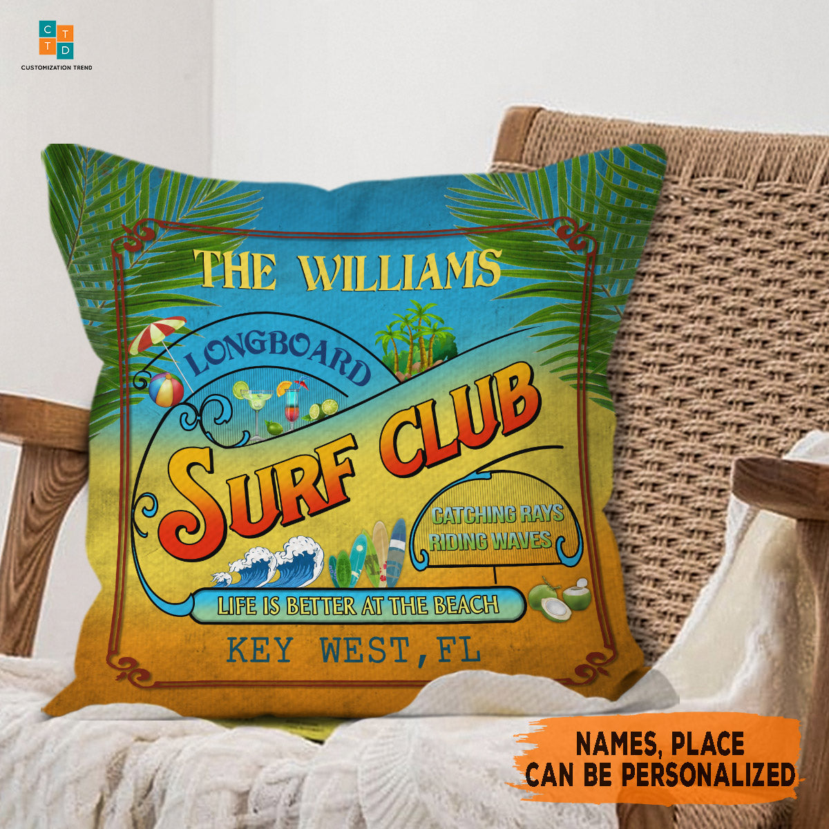 Personalized Longboard Surf Clublife Is Better At The Beach Pillow , Custom Family Pillow