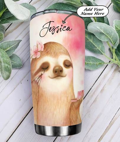 Personalized Makeup Sloth Stainless Steel Tumbler, Personalized Tumblers, Tumbler Cups, Custom Tumblers