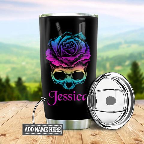 Personalized Mandala Skull Rose Stainless Steel Tumbler, Personalized Tumblers, Tumbler Cups, Custom Tumblers