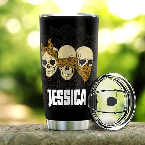 Personalized Mandala Skull Stainless Steel Tumbler, Personalized Tumblers, Tumbler Cups, Custom Tumblers