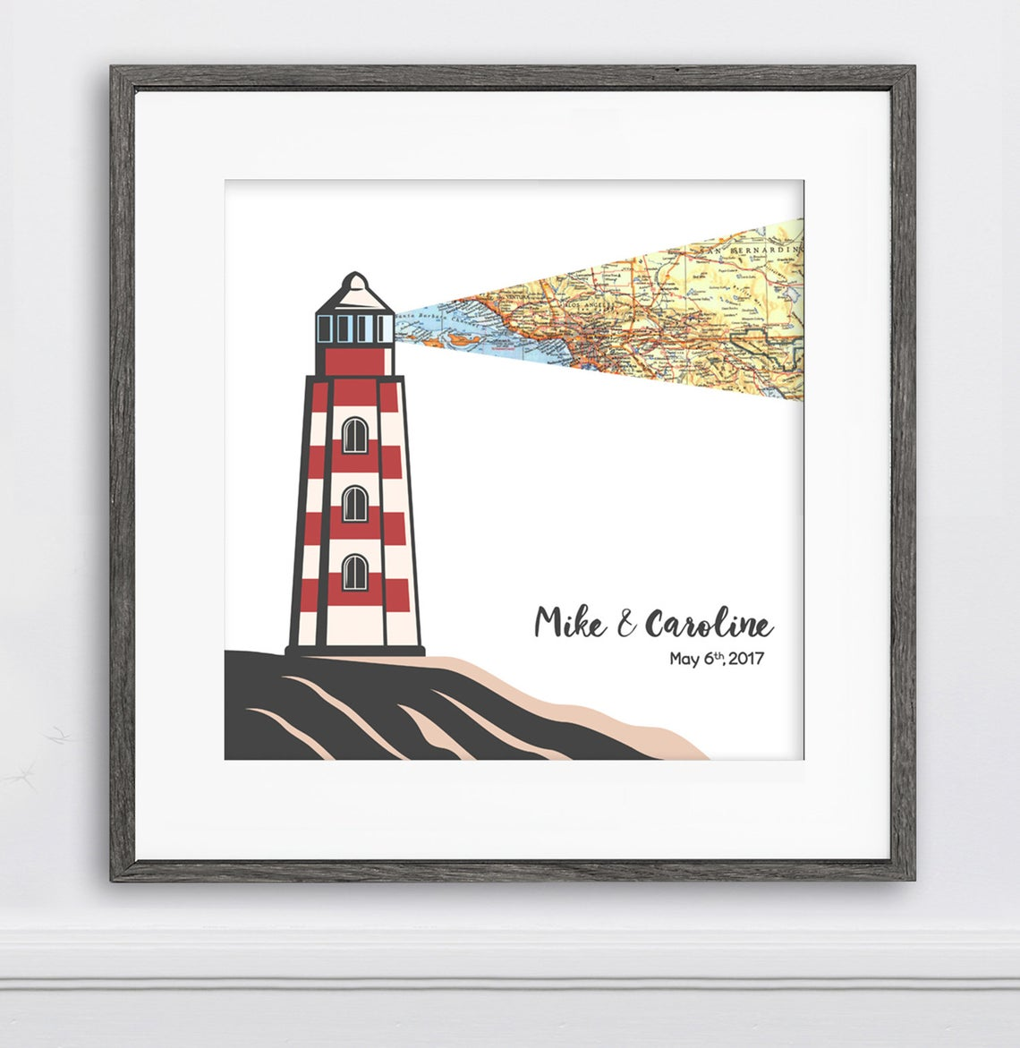 Personalized Map Lighthouse Shining Anniversary Square Poster