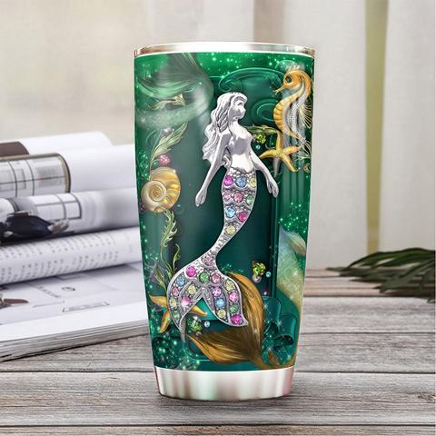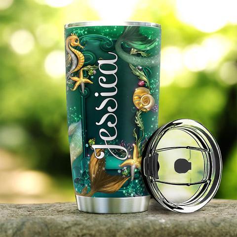Personalized Mermaid Green Jewelry Style Stainless Steel Tumbler, Personalized Tumblers, Tumbler Cups, Custom Tumblers
