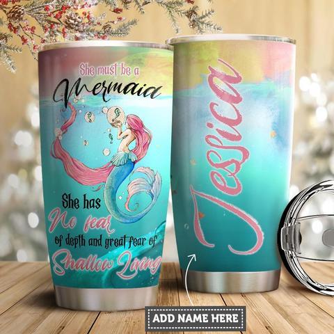 Personalized Mermaid No Fear Stainless Steel Tumbler, Personalized Tumblers, Tumbler Cups, Custom Tumblers