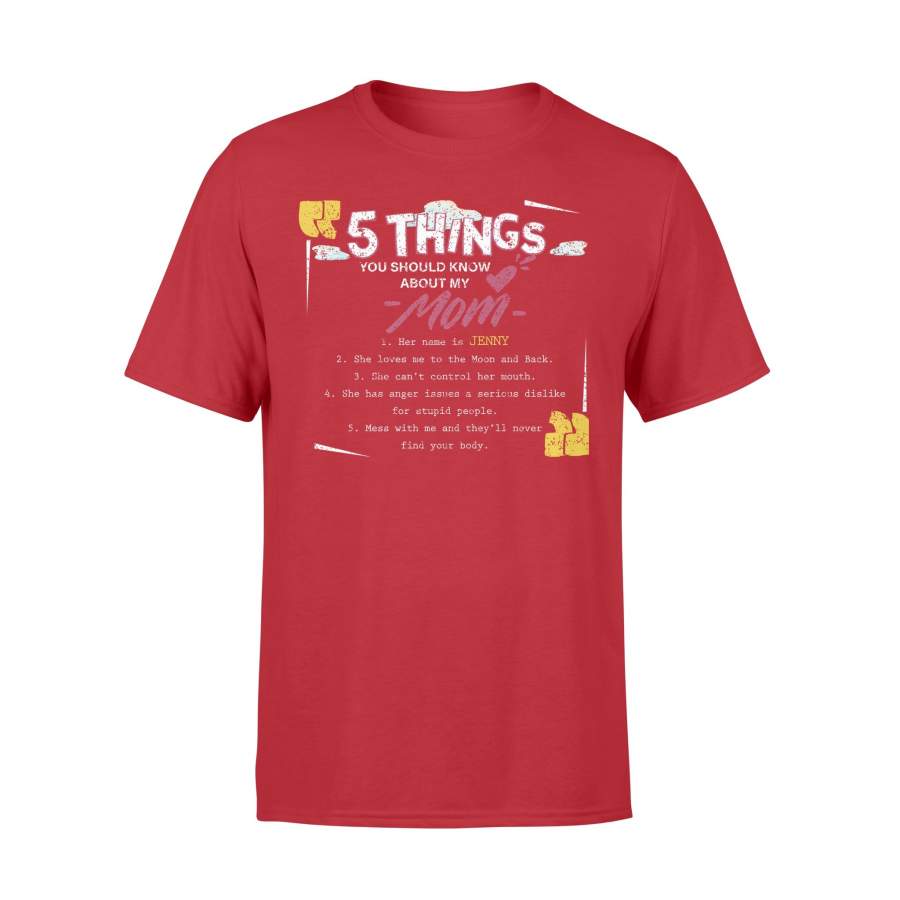 Personalized Mother Gift Idea 5 Thing You Should Know About My Mom Her Name Is Jenny – Standard T-shirt