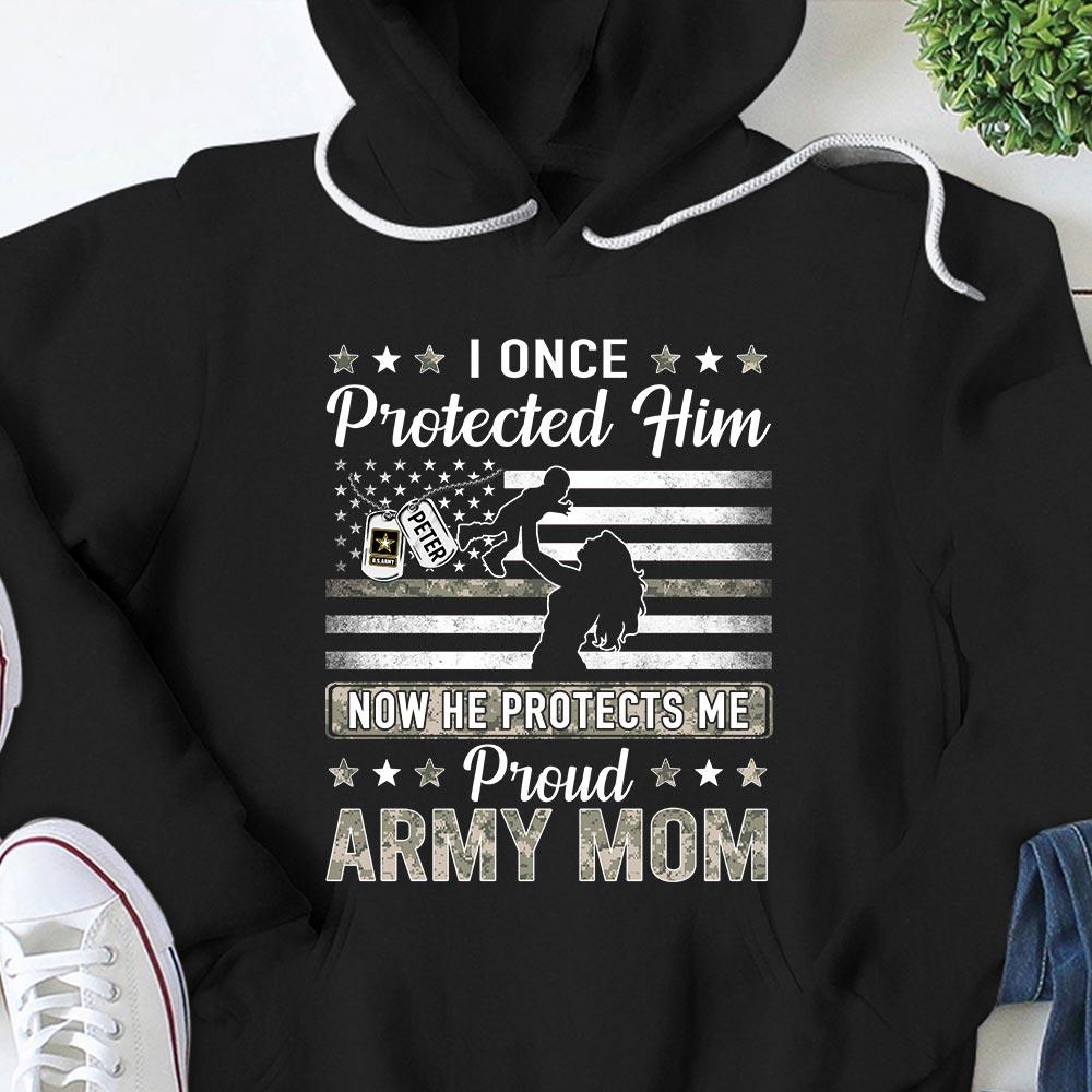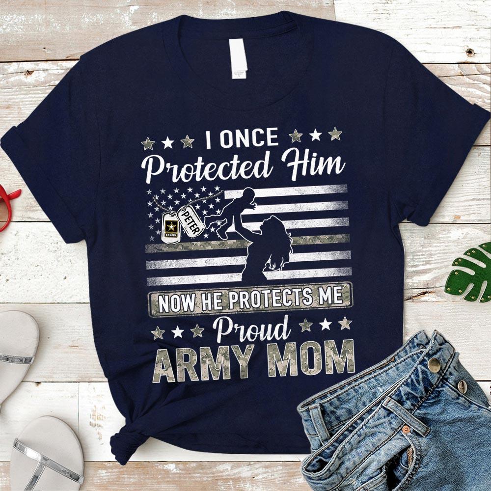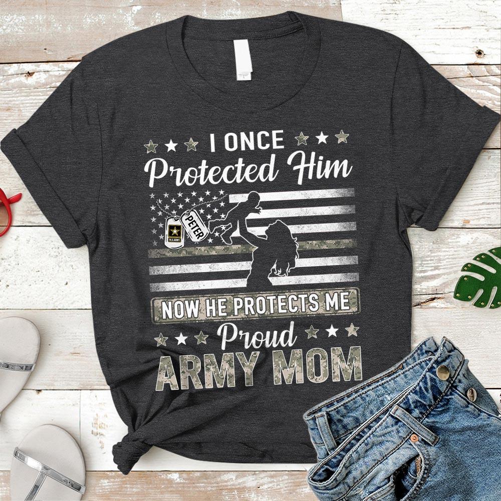 Personalized Name & Family Member | I Once Protected Him(Her) Now He(She) Protects Me – Proud Army Mom, Dad For All Military Branch Military Shirt – K1702