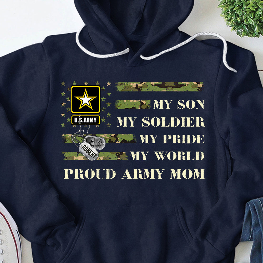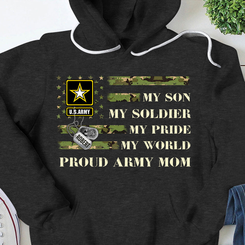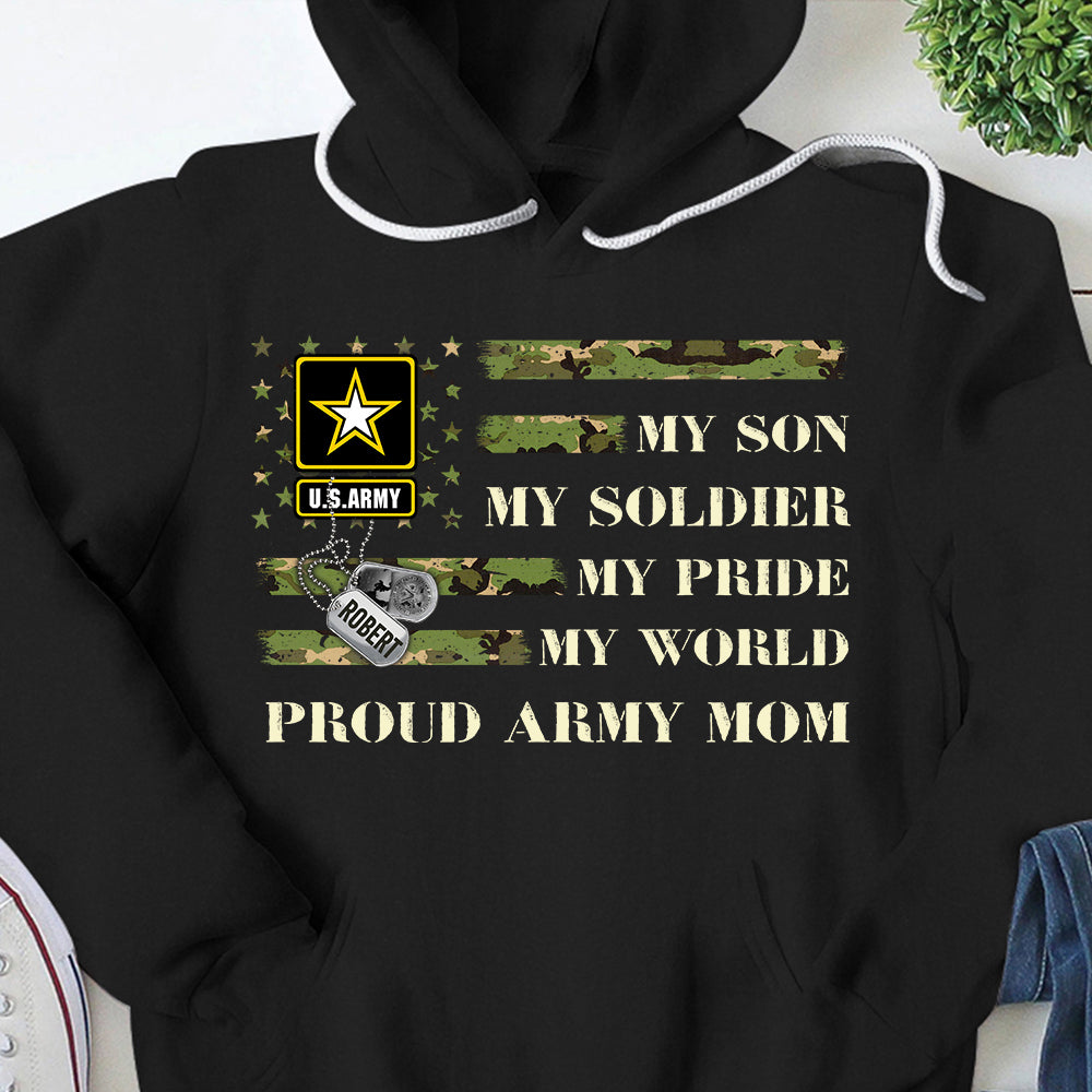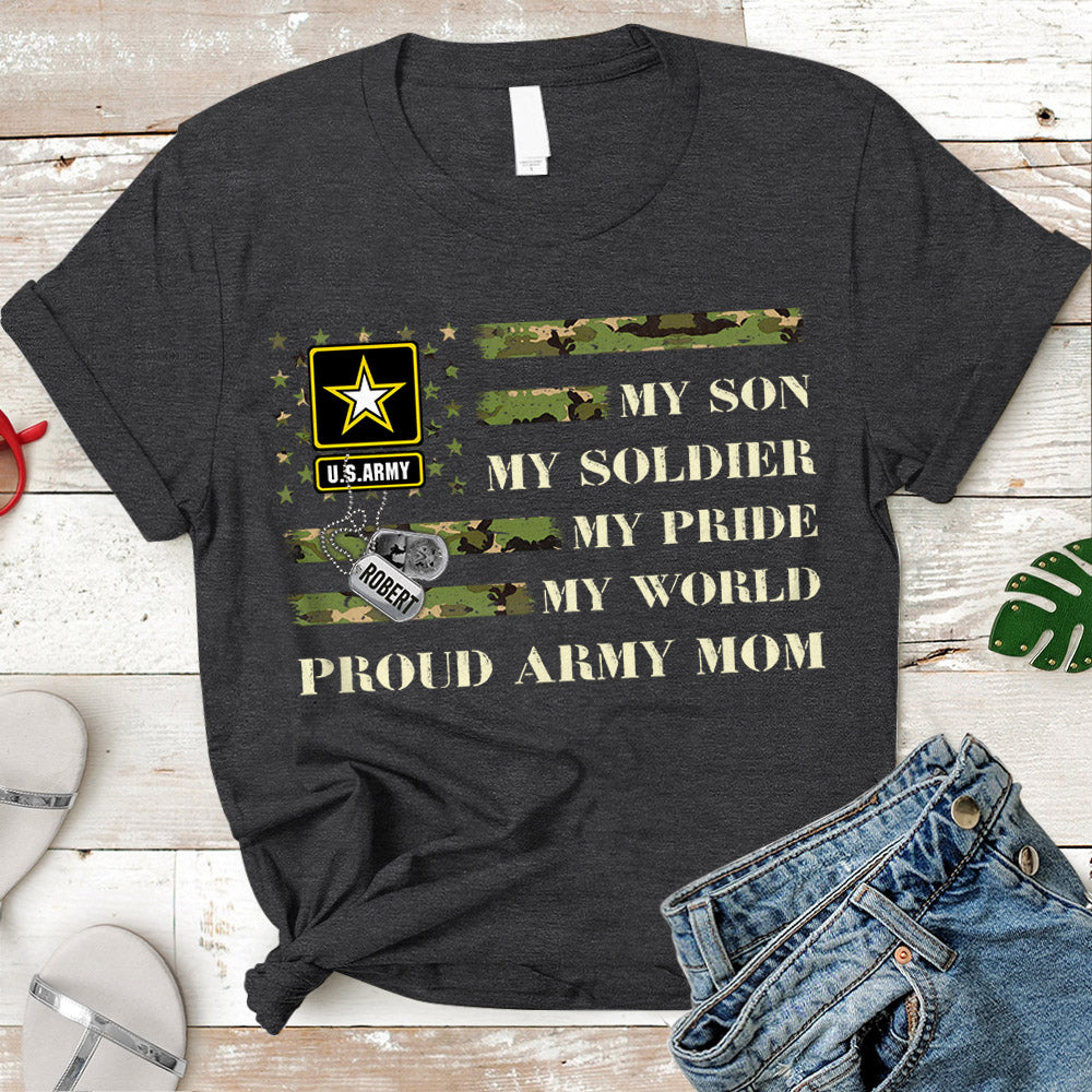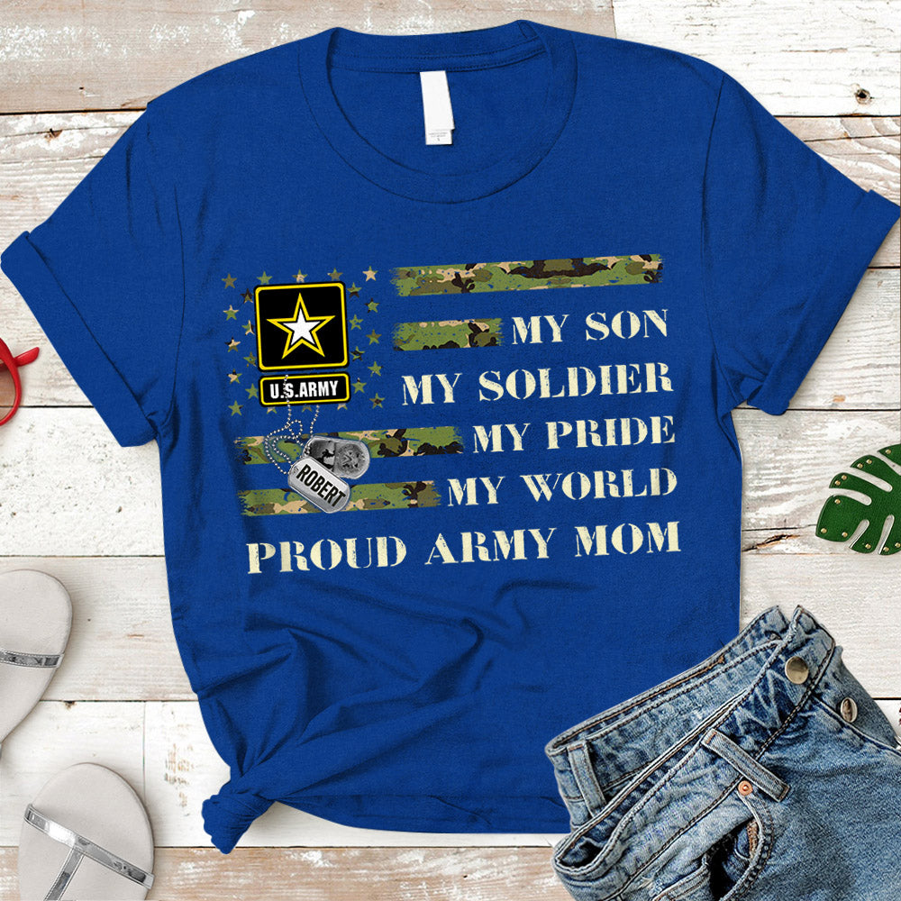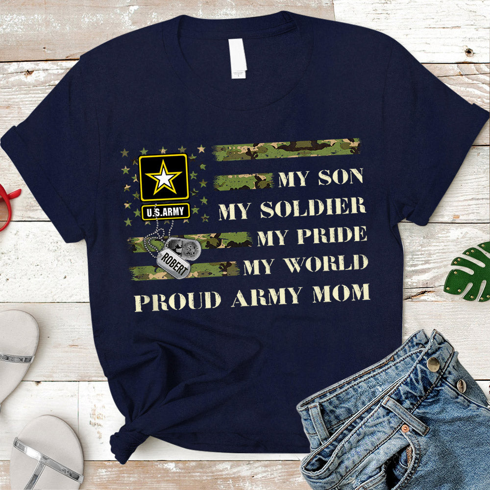Personalized Name & Family Member My Son My Soldier My Pride My World Proud Army Mom Tshirt For All Family Member K1702 Do99